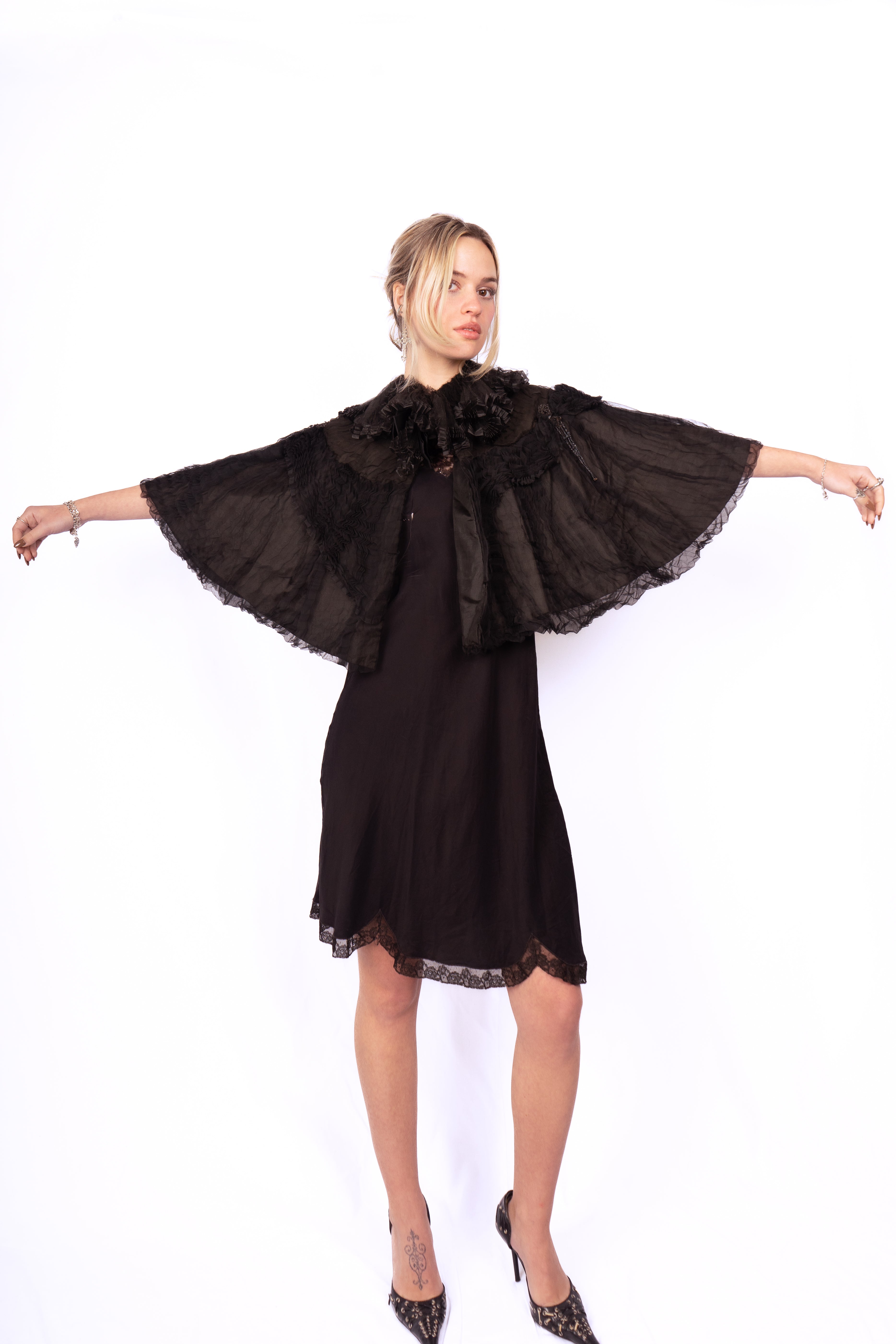Edwardian Silk Pleated Mourning Cape