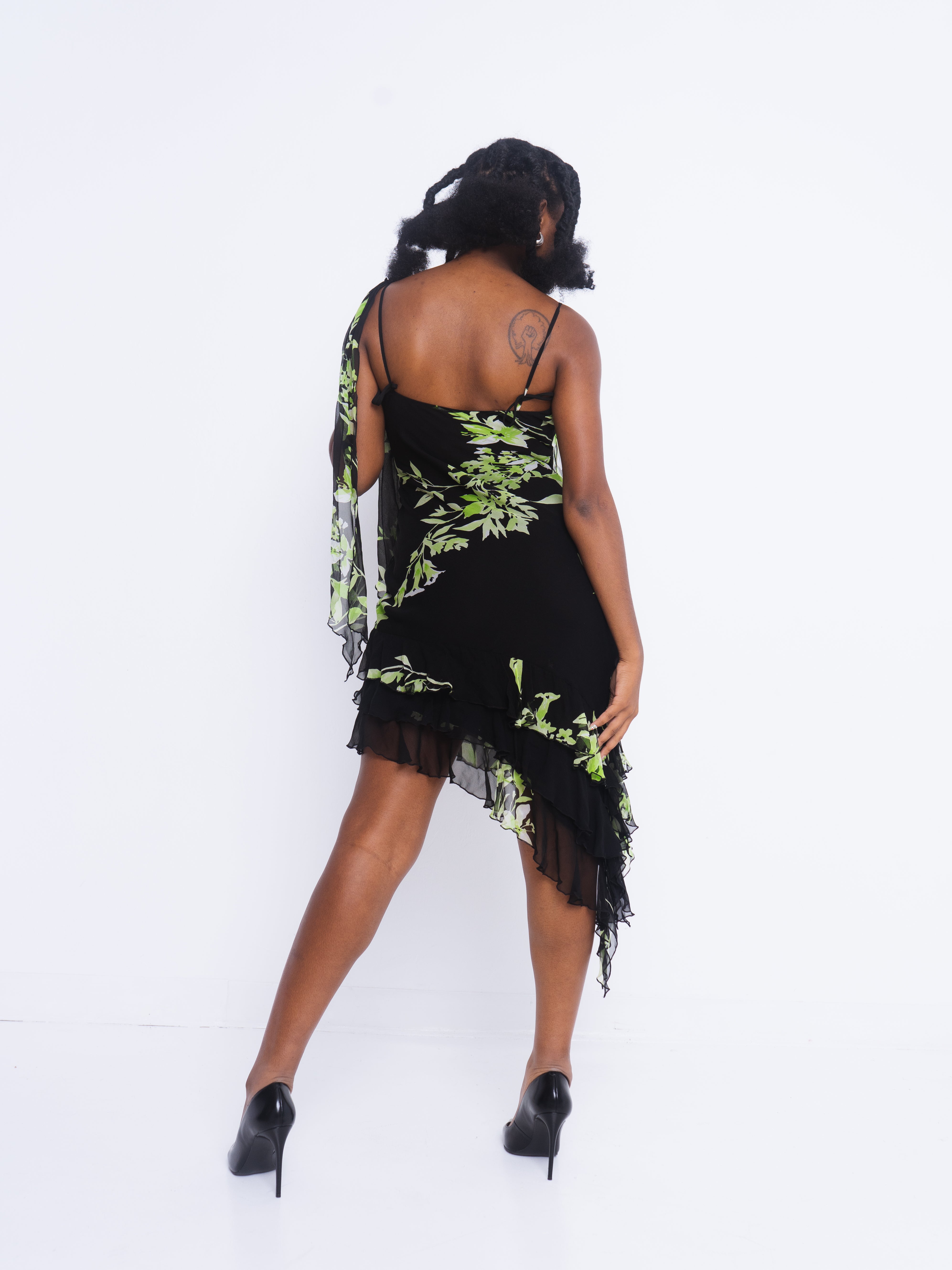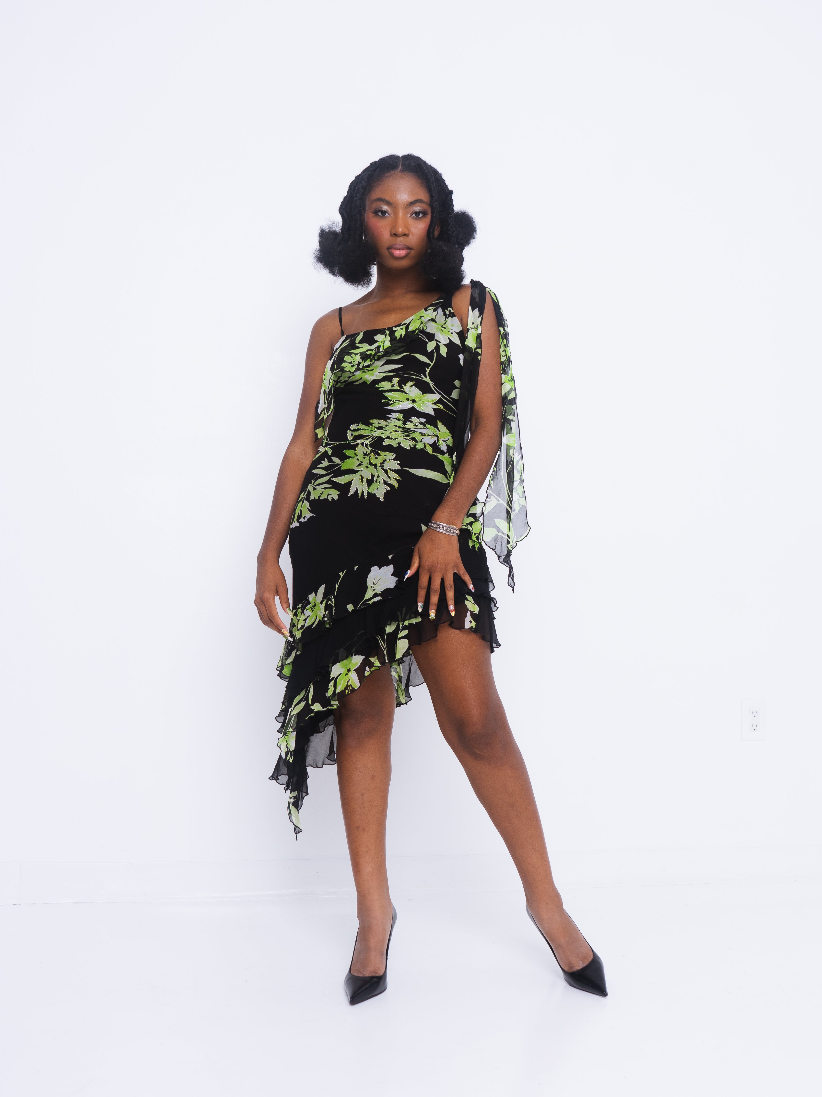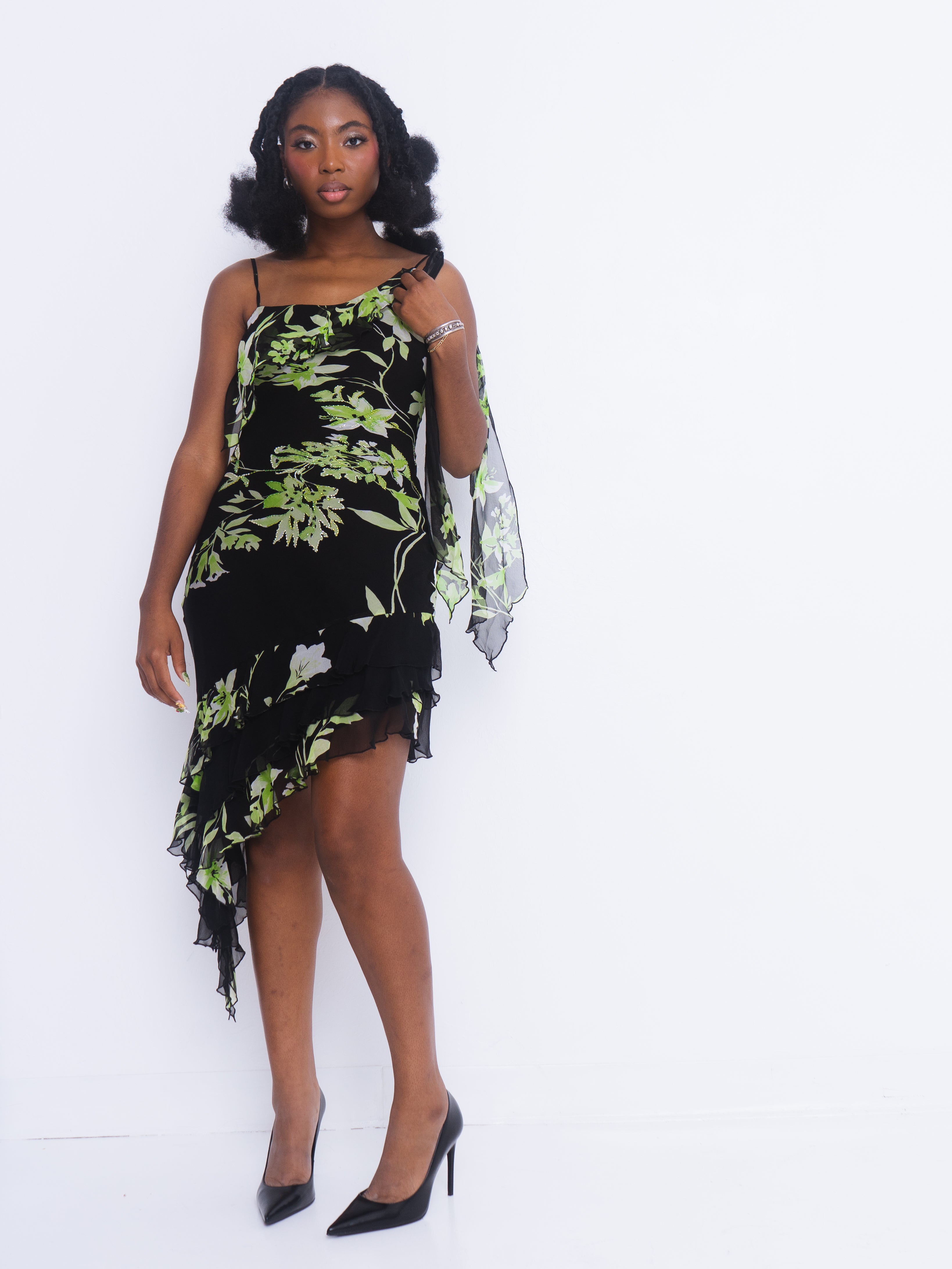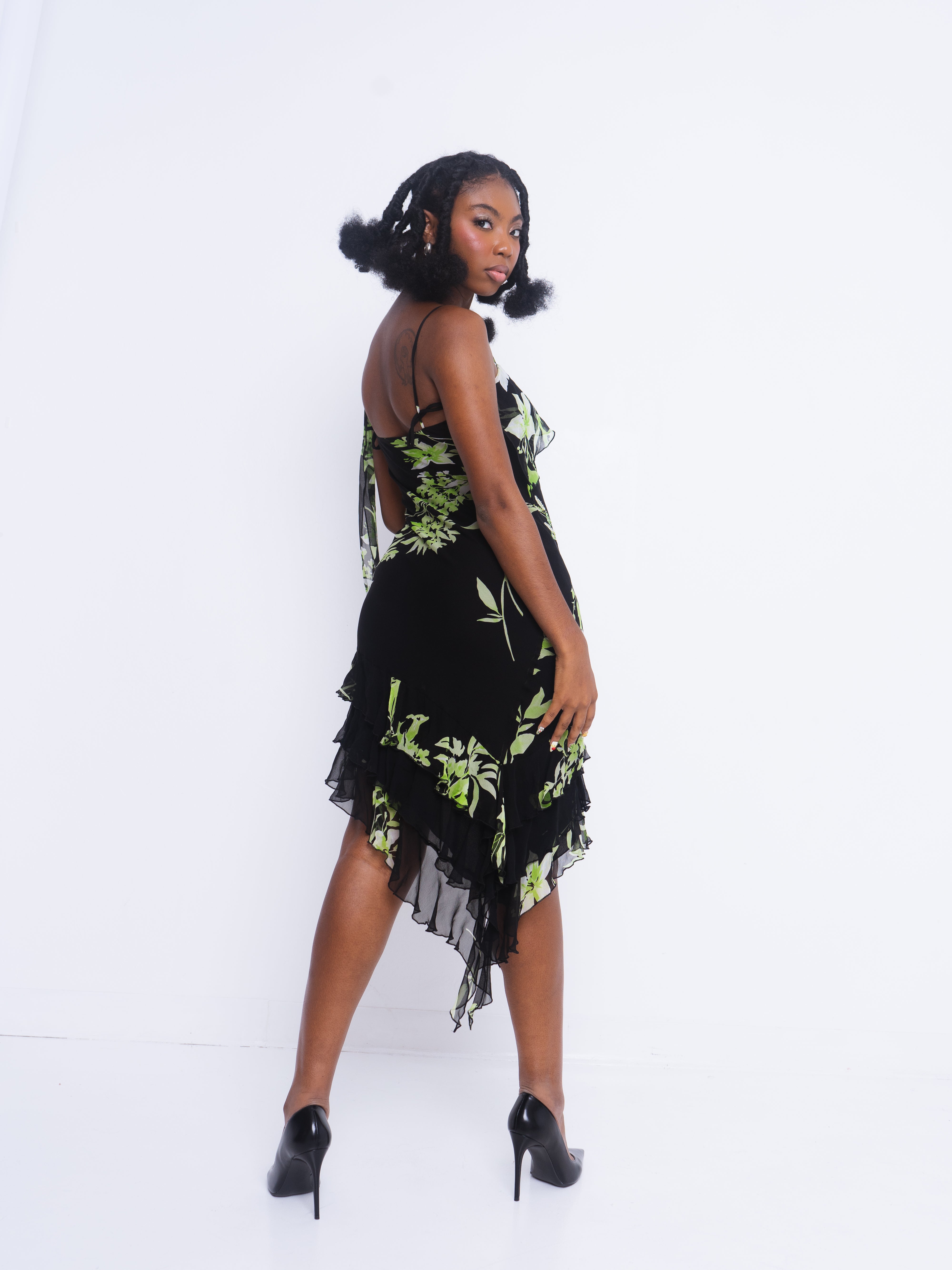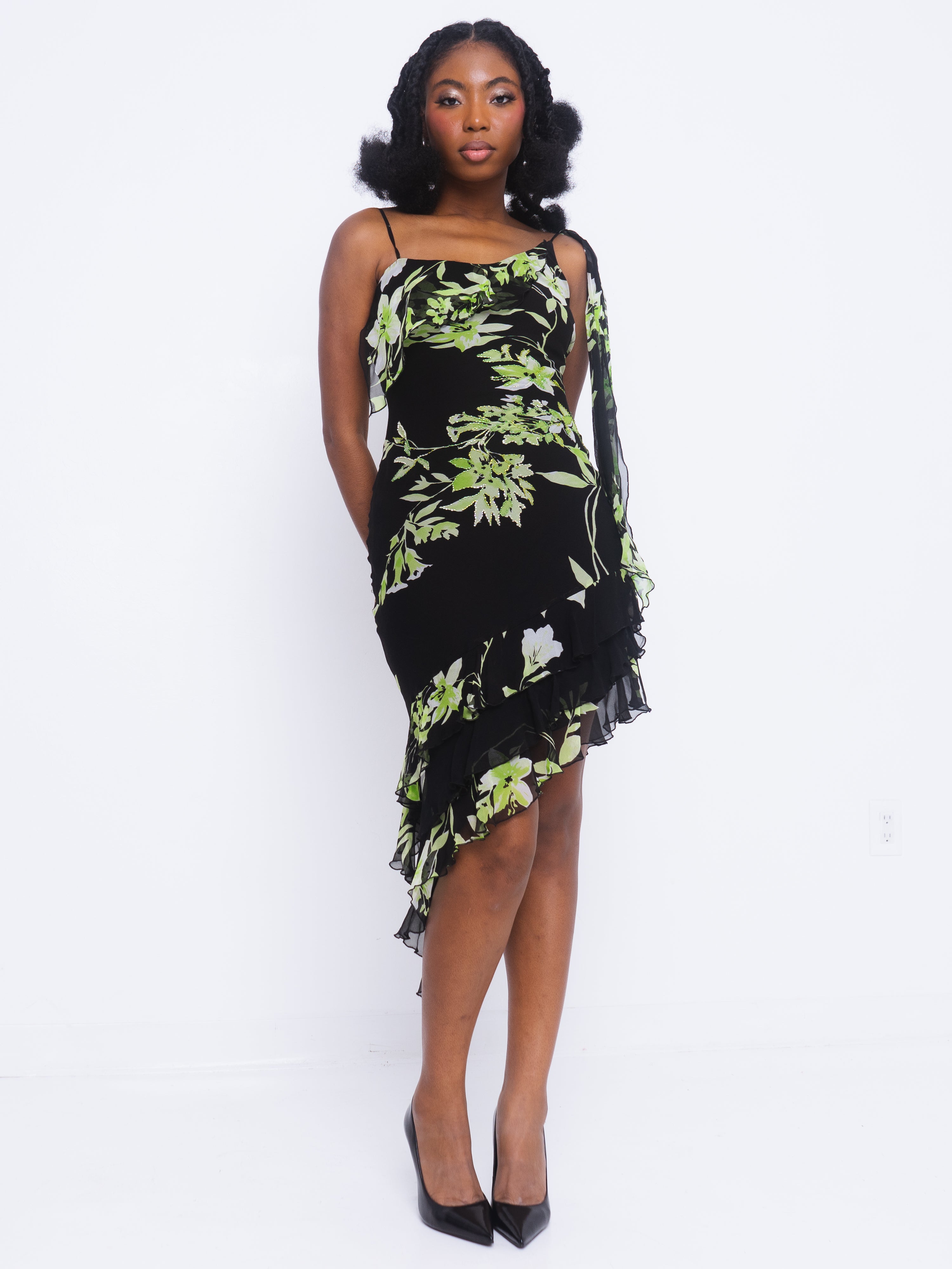 Y2K Silk Bias Floral Chiffon Caché Dress