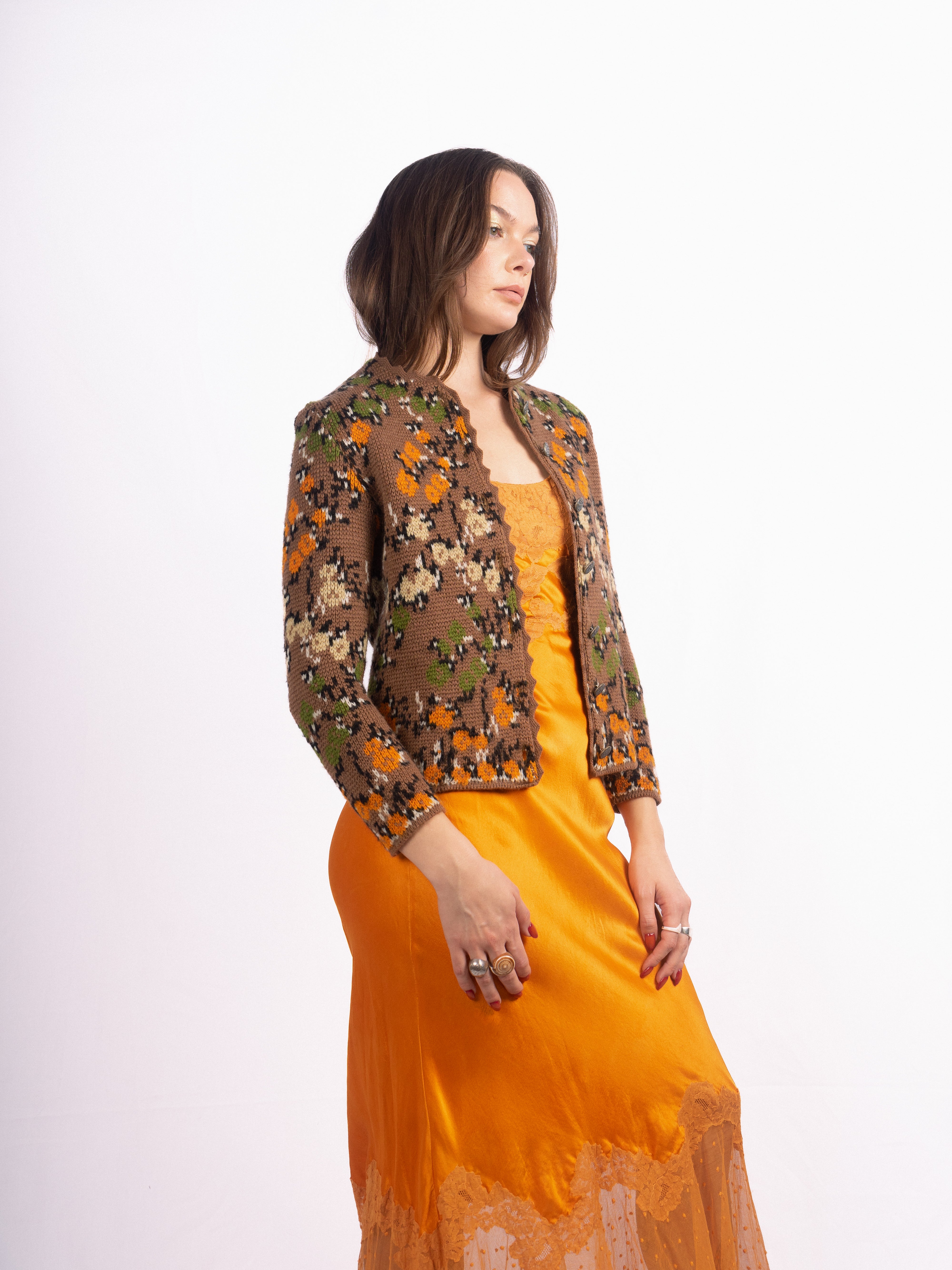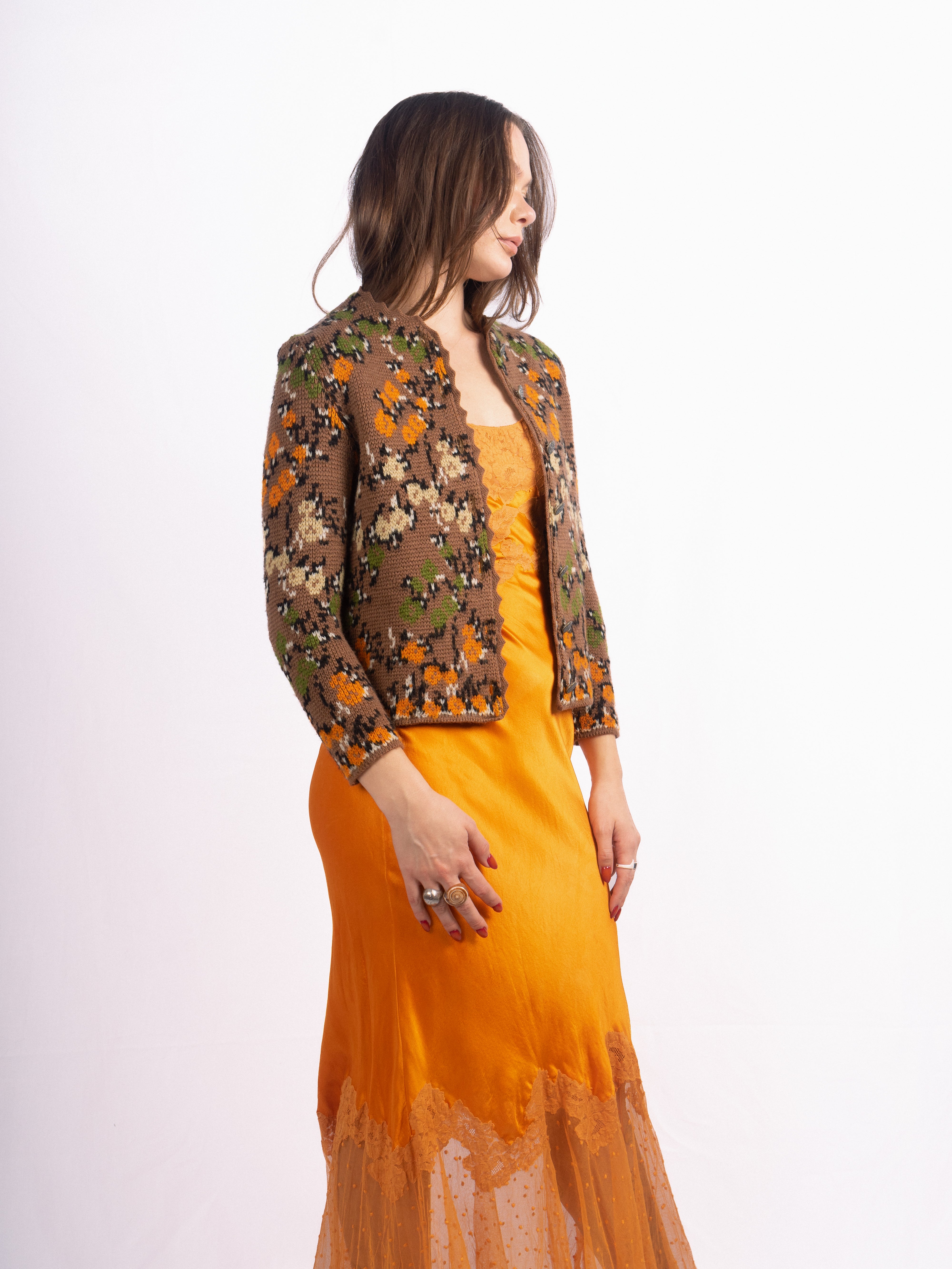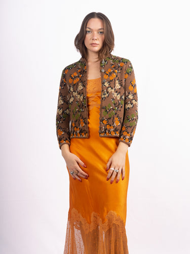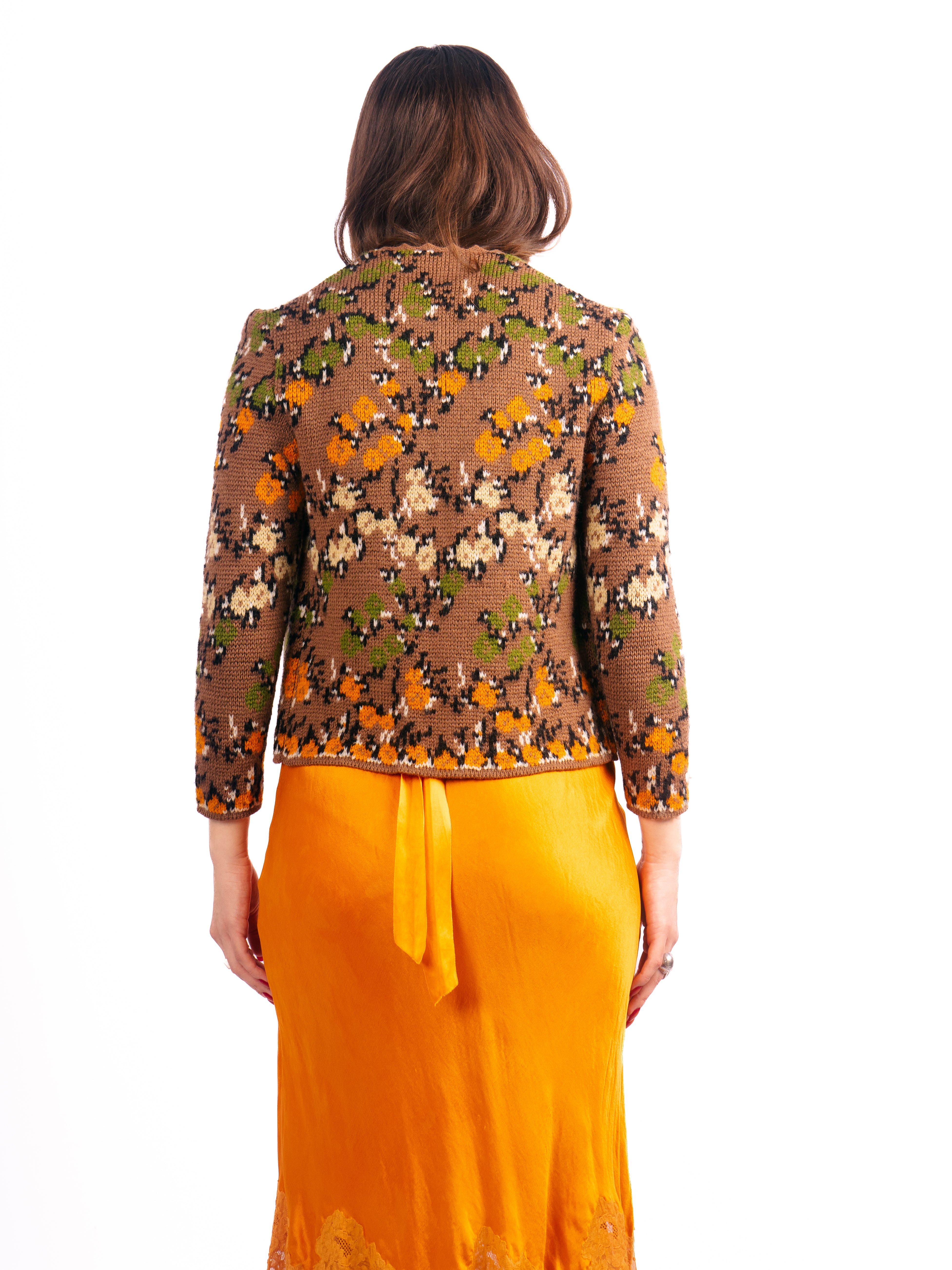 1960's Catalina floral knit brown floral cropped sweater in the perfect fall shades. Mint Condition.
