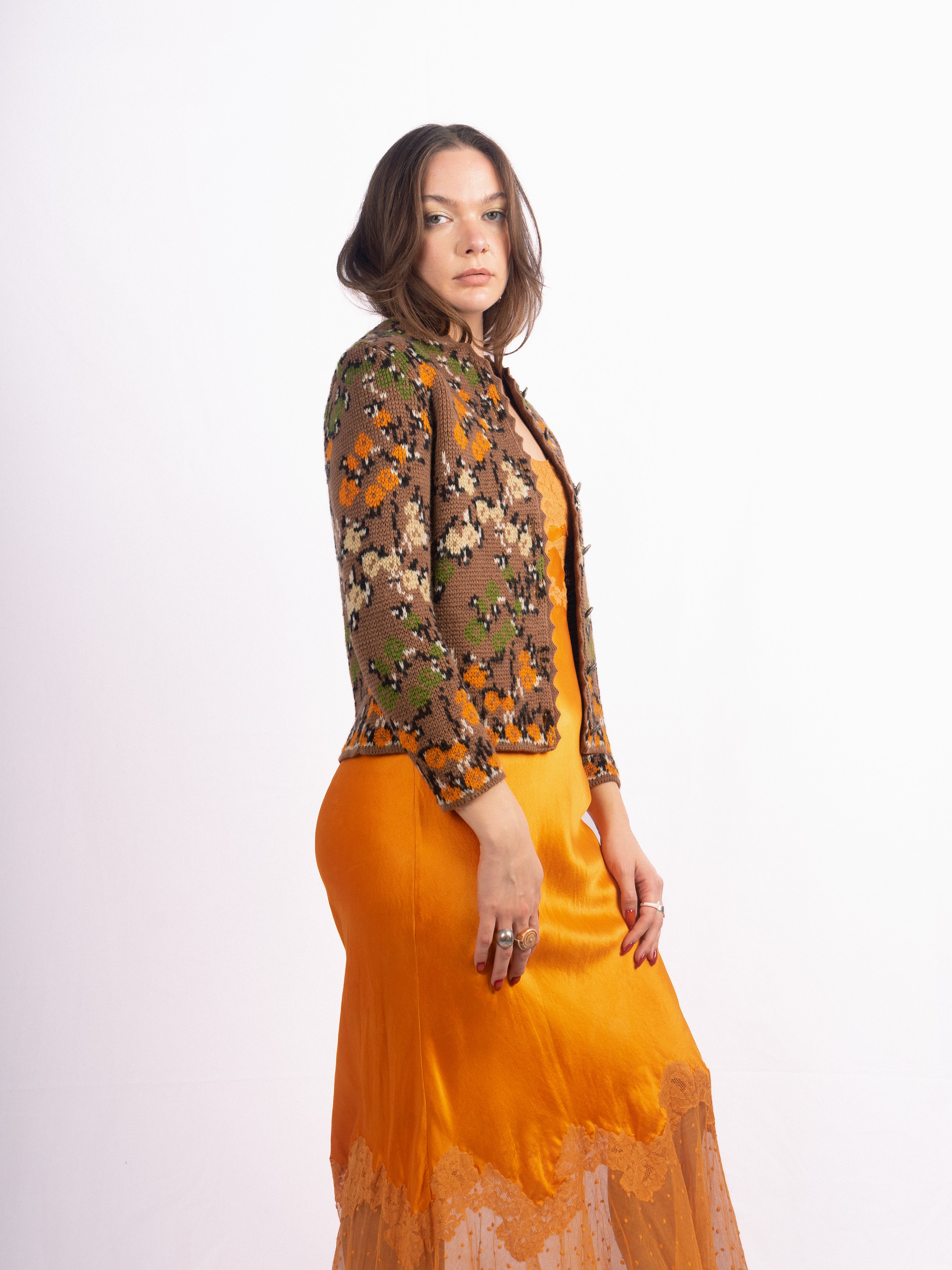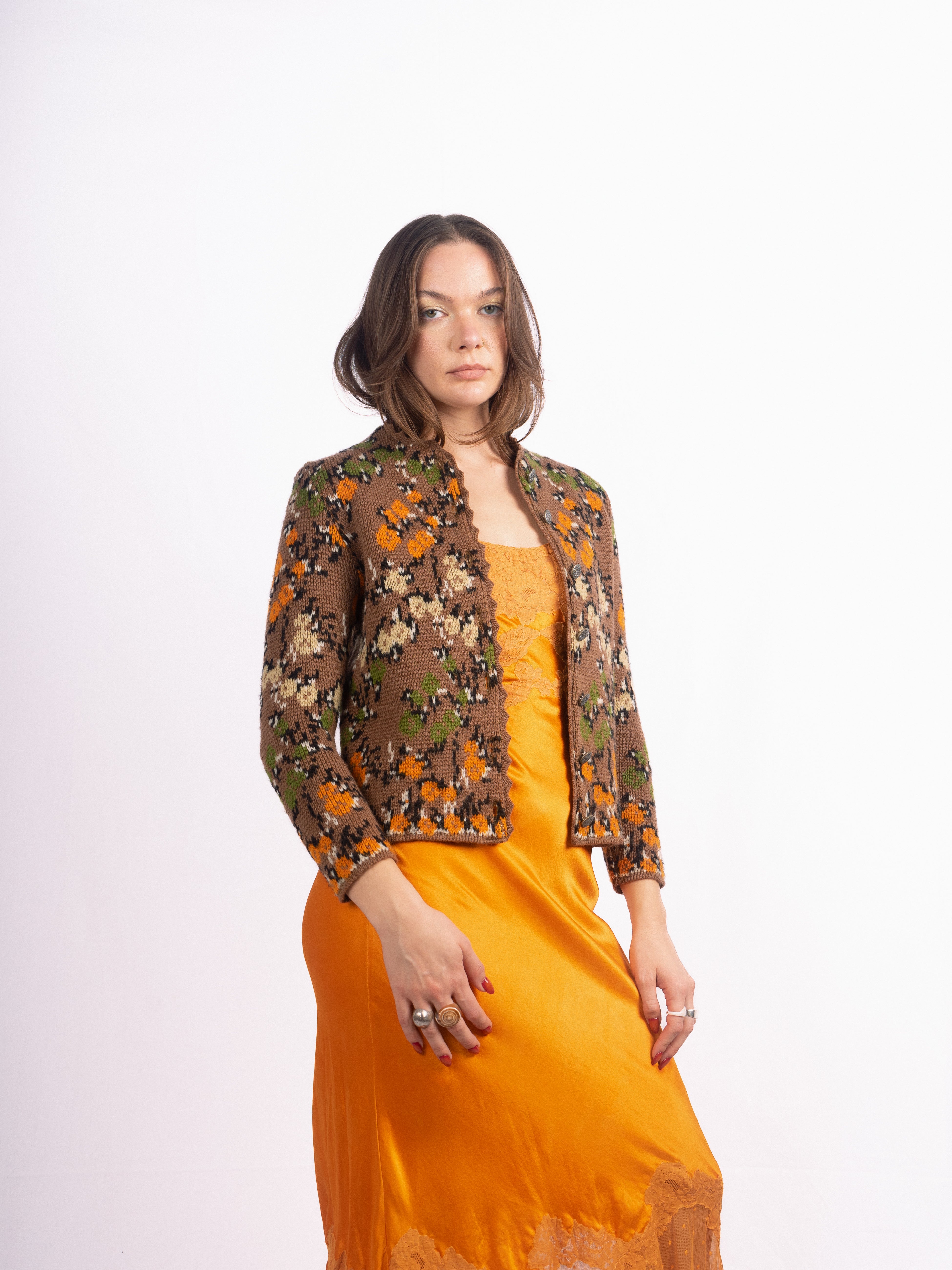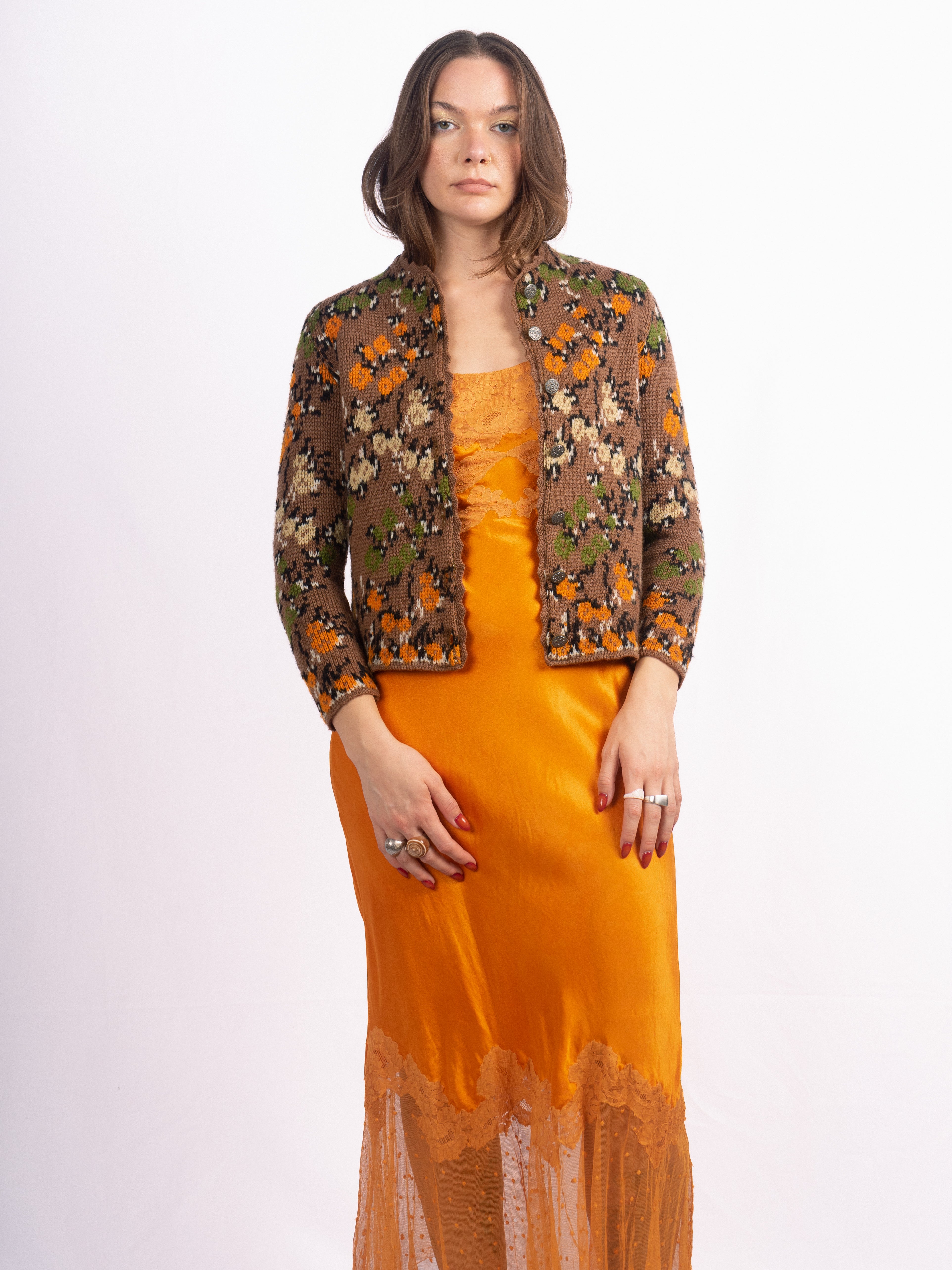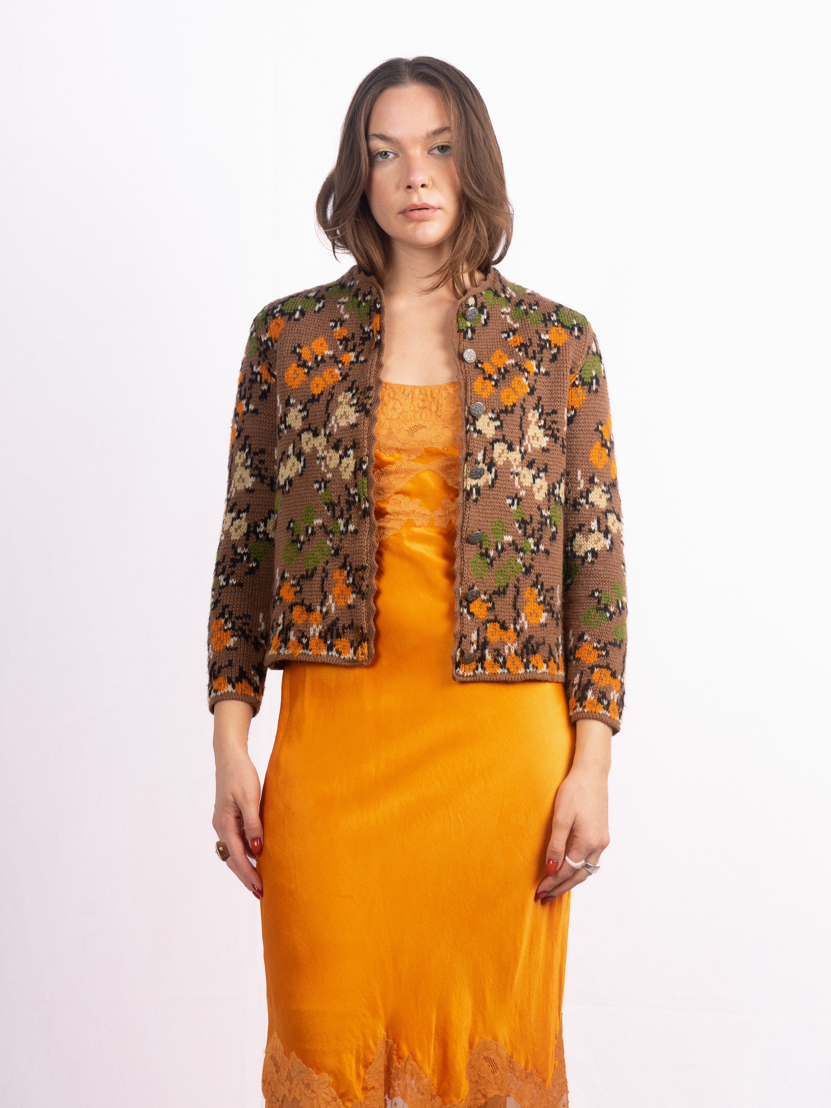 1960's Catalina floral knit brown floral cropped sweater in the perfect fall shades. Mint Condition.